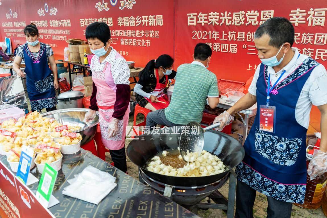 4月14日(農(nóng)歷三月三),2021年上杭縣創(chuàng)建全國民族團(tuán)結(jié)進(jìn)步示范區(qū)暨第四屆“三月三”畬族民俗文化節(jié)在上杭縣廬豐畬族鄉(xiāng)藍(lán)氏家廟廣場正式開幕。本次活動引了起周邊區(qū)域廣大關(guān)注,吸引大量各區(qū)、縣的游客。此次活動以“百年榮光感黨恩  幸福畬鄉(xiāng)開新局”為主題,通過畬鄉(xiāng)迎賓儀式、《唱支山歌給黨聽》快閃、畬族民俗文化節(jié)文藝展演、畬族祭祀文化展示、烏米飯創(chuàng)意大賽和畬鄉(xiāng)美食研討會、上杭特色美食和農(nóng)副產(chǎn)品展、畬服展示及學(xué)黨史競答等活動,展示了畬族優(yōu)秀傳統(tǒng)文化,引導(dǎo)各族群眾共同團(tuán)結(jié)奮斗、共同繁榮發(fā)展,鑄牢中華民族共同體意識。
